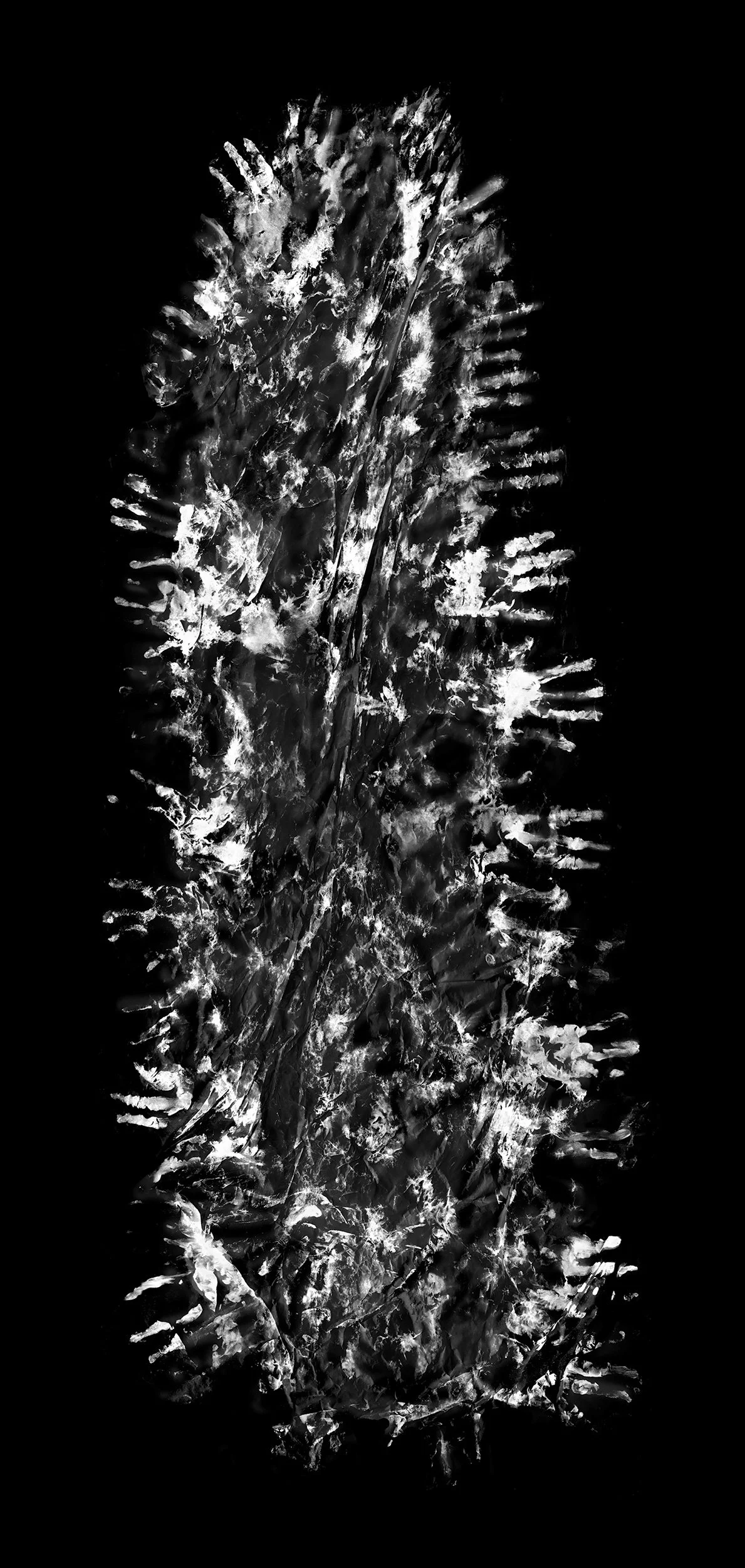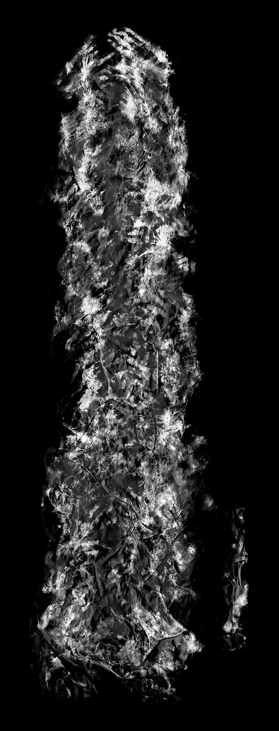 This project includes a series of sculptural works composed of large, vertically oriented vessels. These forms are made by weaving repurposed draft prints from the portrait series of burned trees.