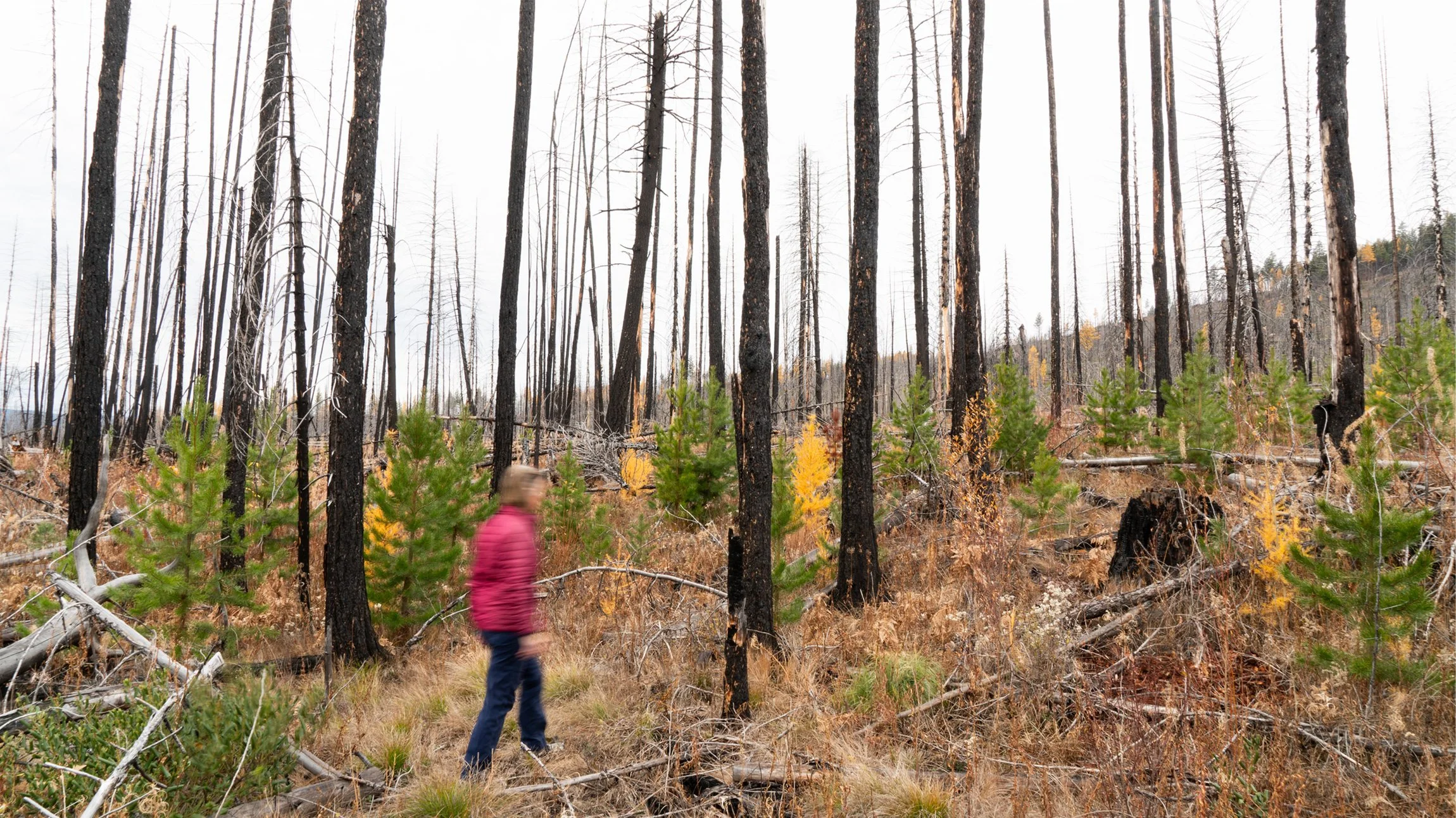 Walking through a burned forest in the Lolo National Forest near my home in Montana, 2025.